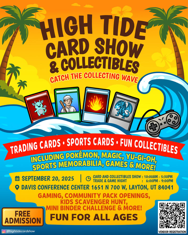 Experience one of Utah’s biggest island themed card and collectibles event on September 20, 2025, at the Davis Conference Center! Enjoy 18,000+ sq. ft. of vendors, tournaments, giveaways, and a thrilling Trade & Game Night!