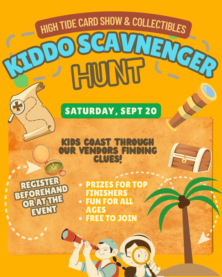 High Tide Card Show & Collectibles is an independently organized event and is not affiliated, associated, authorized, endorsed by, or in any way officially connected with Nintendo, The Pokémon Company, Wizards of the Coast, Konami, or any other official TCG or gaming companies. All trademarks, logos, and brand names are the property of their respective owners and are used only for identification purposes.Vendors and third-party participants at this event operate independently and are responsible for ensuring their products, displays, and materials comply with all applicable intellectual property laws. High Tide Card Show & Collectibles does not assume liability for any unauthorized use of trademarks or copyrighted content by vendors or attendees.