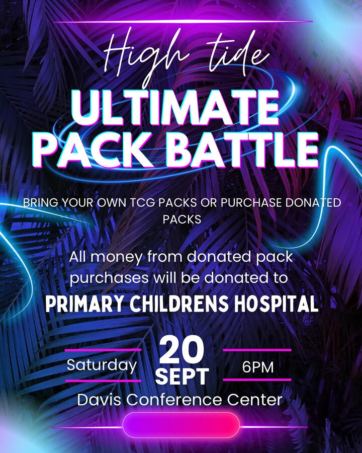 Get ready for one of the biggest pack battles in the state!Bring any TCG or sports packs and join the fun! Don’t have a pack? No problem—there will be packs available for purchase, and 100% of the proceeds will be donated to Primary Children’s Hospital!We’re also collecting new toy donations to bring extra smiles to the kids. Check out the link below to see the hospital’s most requested toys.Proceeds benefit Primary Children’s Hospital. This event is independently organized and not affiliated with or endorsed by the hospital.”